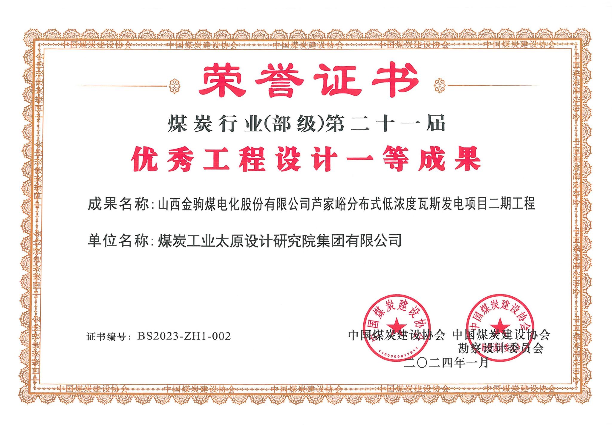 山西金驹煤电化股份有限公司芦家峪分布式低浓度瓦斯发电项目...